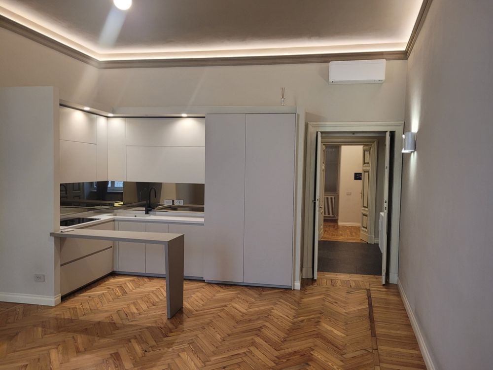 VIA FARINI laterale in palazzo d'epoca ristrutturato nelle parti comuni (tetto, facciata, vano scala) vendiamo appartamento di 145 mq ristrutturato nel 2022. Ingresso, soggiorno con cucina a vista (modulnova), due camere matrimoniali con cabine armadi, due bagni (uno con finestra) ripostiglio, cantina e garage (in affitto) Dotazioni: ascensore, pompa di calore, allarme perimetrale e volumetrico. Euro: 445.000,00 Tel. 335-371219